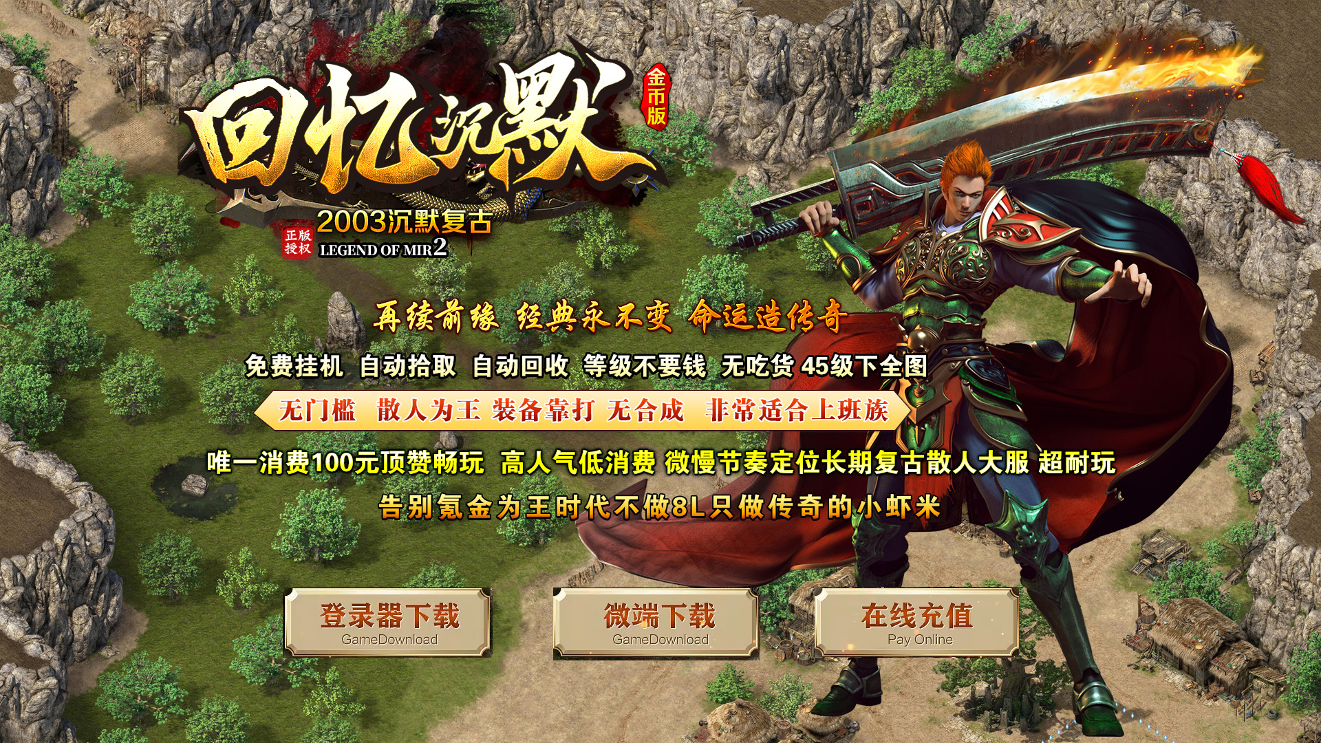 【版本特色】:本游戏所有装备靠打、级别可以手动升级和吃货升级、元宝装备保值、散人必选